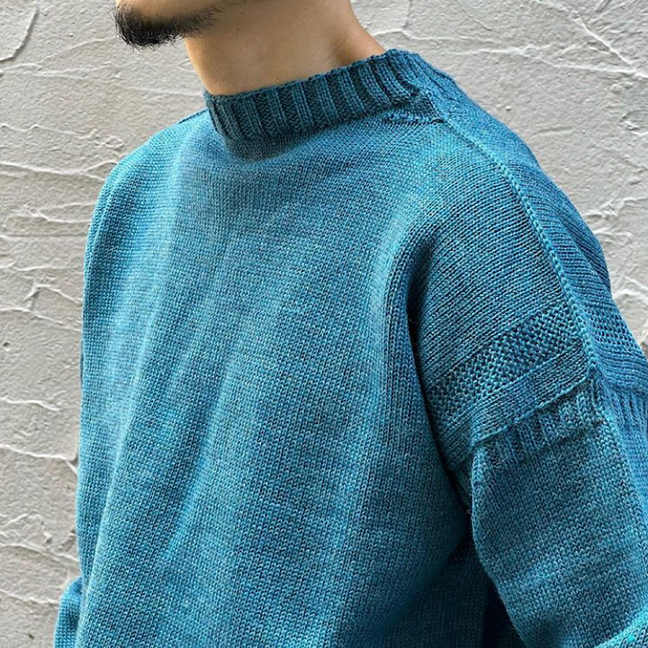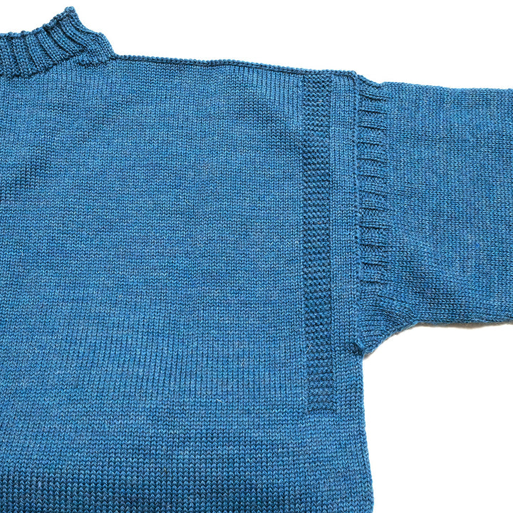 伝統的な技法で作られたフィッシャーマンズセーター。漁師が明かりの少ない船上で着るとき前後を間違えても良い様に、直線的に平面で編まれているため前後対称的なデザイン。伝統的な仕様を取り入れながらも、シルエットは若干ゆとりを持たせ、モダンなサイジングです。