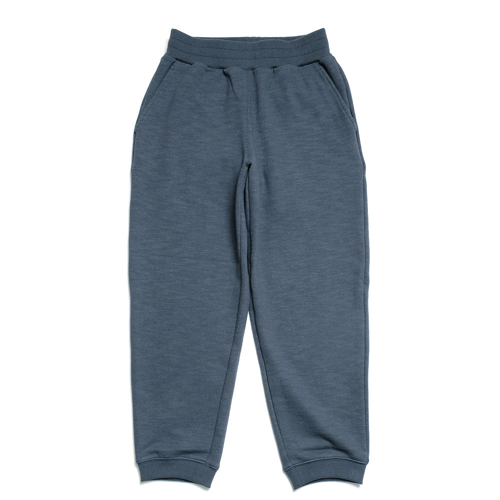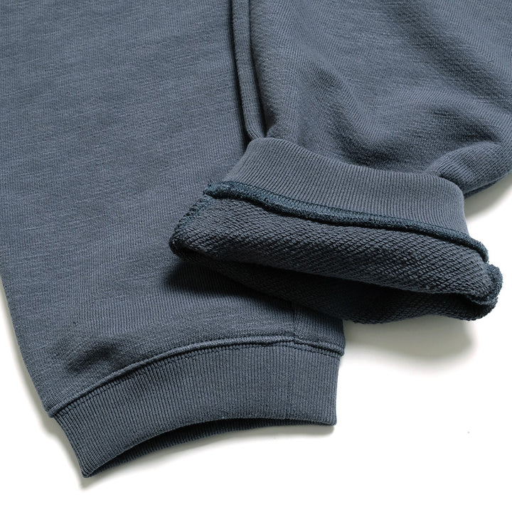 国産の太番手の糸を採用し、肉厚感と柔らかさをあわせ持つGG裏毛を使用したスウェットパンツ。裏面は起毛させておらず、夏以外の3シーズン着用可能。裾のリブも2本取りの糸を使い耐久性を高めており、またカジュアル過ぎないようやや短めに設定しています。