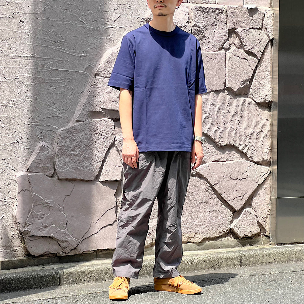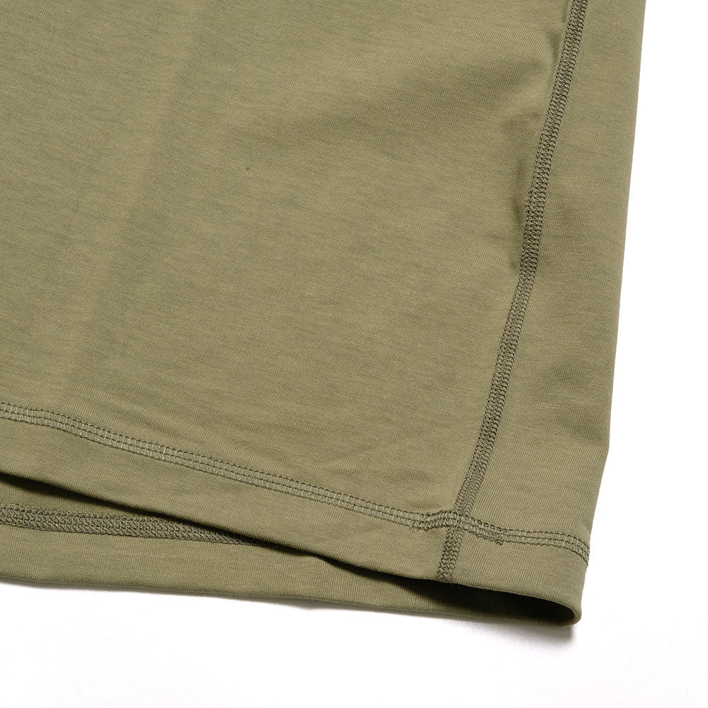 コットン100%とは思えない、シルクのような肌触りと光沢感のあるTシャツ。グレース天竺は綿の表面の毛羽を溶剤で溶かして滑らかにして肌触りを快適にした綿100% 素材。高密度に編み立てられたハリのある肉厚な生地は、肌が透けにくい安心感があります。また表面がフラットで機能素材のようなサラッとした生地は、ひんやりと冷たさも感じられます。以前のグレースTシャツより、裾はスクエアに、主な縫製を裏側の縫い代がごろつかないフラットシーマに変更しました。