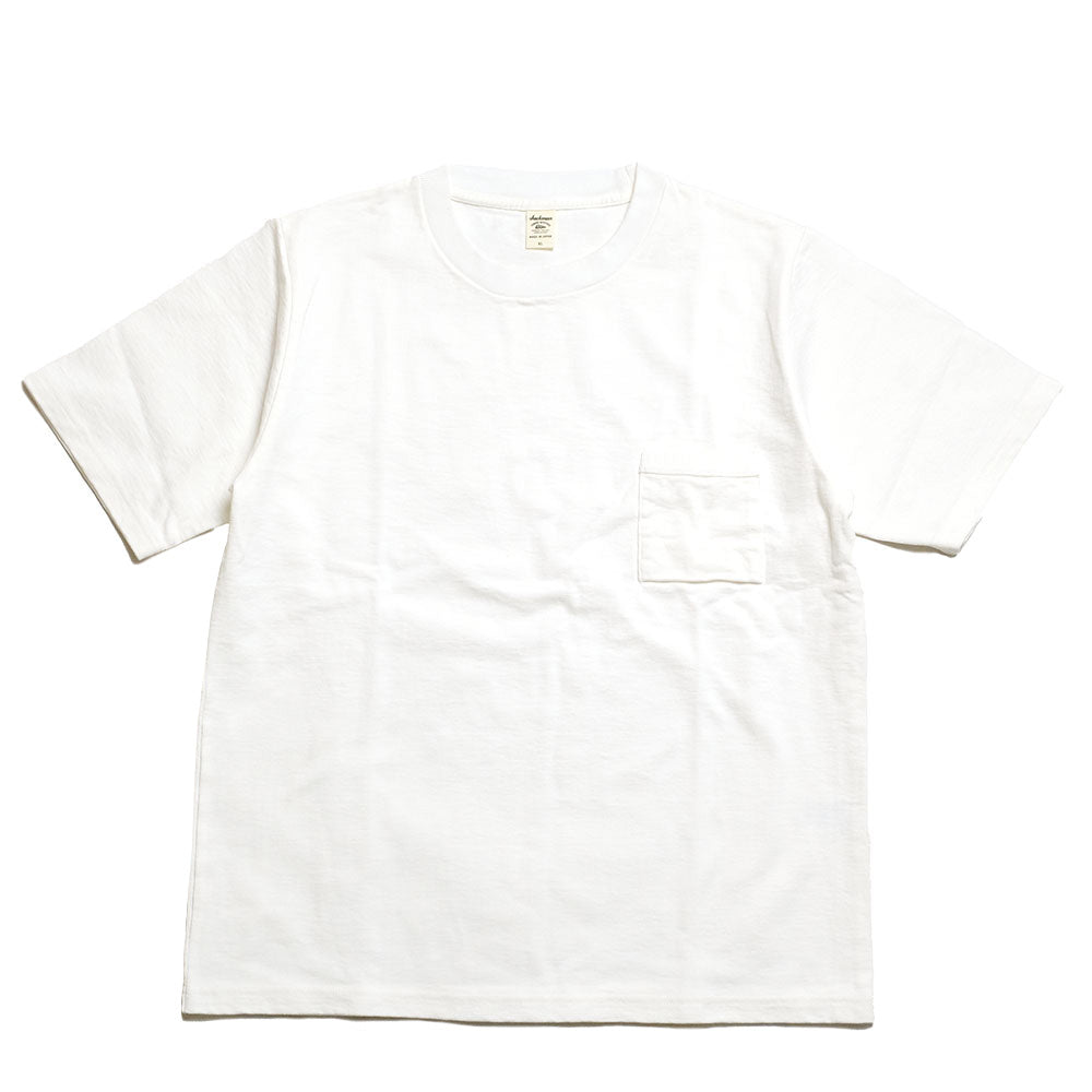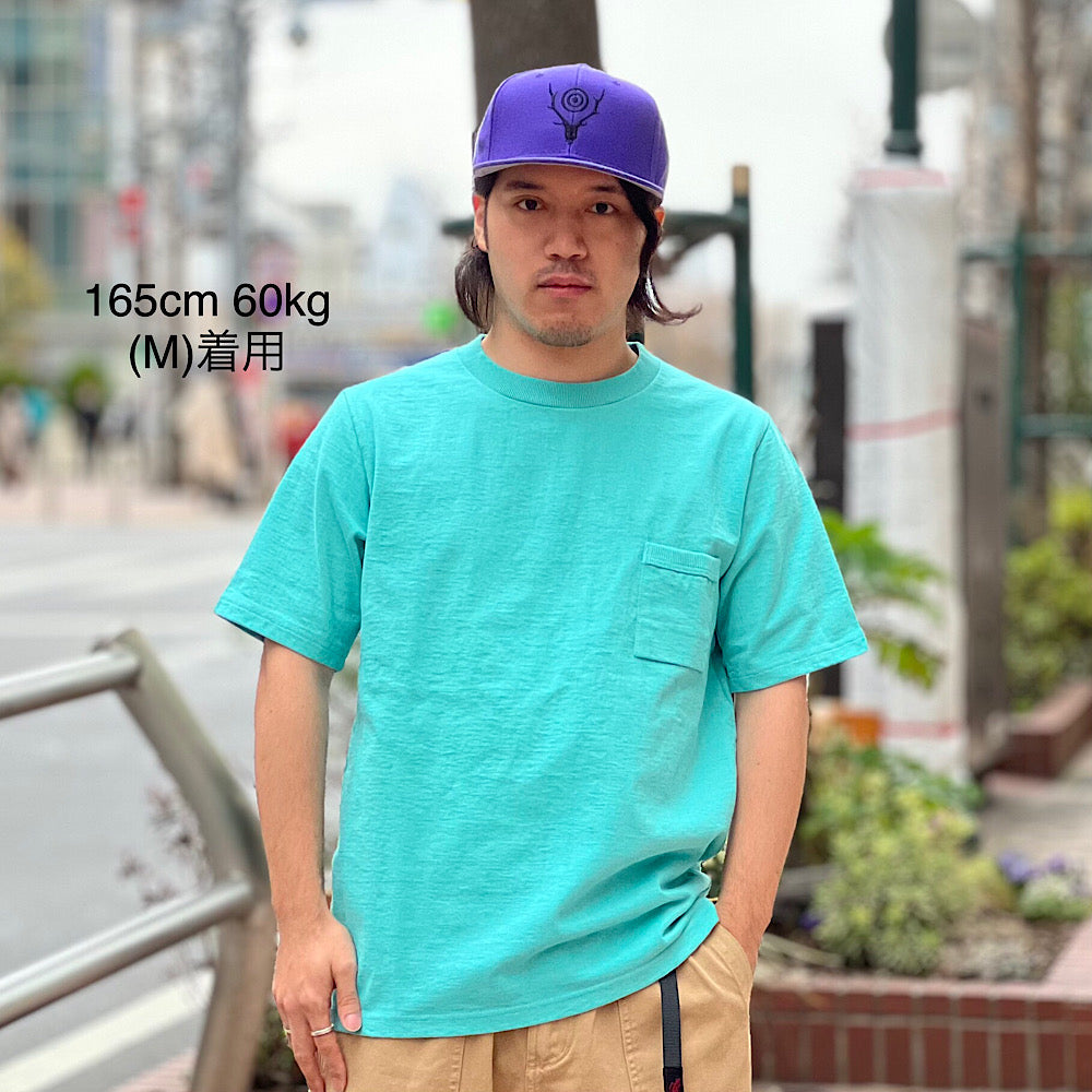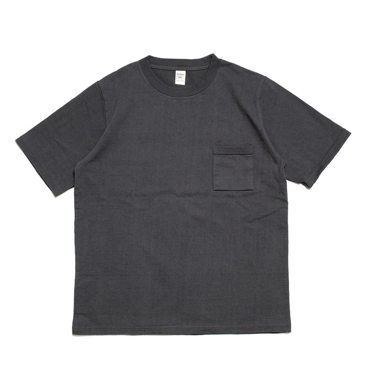 吊り編み機で編立て、極限まで度詰めした生地を使用したTシャツ。耐久性のあるしっかりした生地で、生地表面の凹凸感も特徴的です。ポケットは手の込んだマチ付きの仕様で、縁はリブバインダーで補強されています。