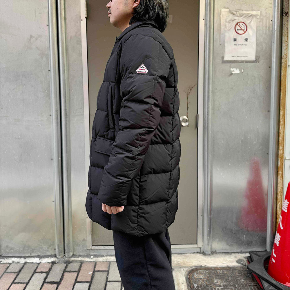 「グラーヴ」はピレネックスのコレクショでは初めてのリリースとなるステンカラーコートをデザインソースとしたダウンジャケット。クラシックなムードを匂わせるフロントボタン仕様で、実用的で汎用性が高いデザインはオンオフ兼用で着用可能。スーツやジャケットの上から着てもストレスを感じないように肩回りや袖のパターンは立体的にし、着丈も十分な長さをキープしています。チェストに配したハンドウォーマーポケットは、肌触りの良いフリースライニングを採用。襟裏にはチンストラップがあり、コートらしく襟を立たせることで首元の冷気を防いでくれます。