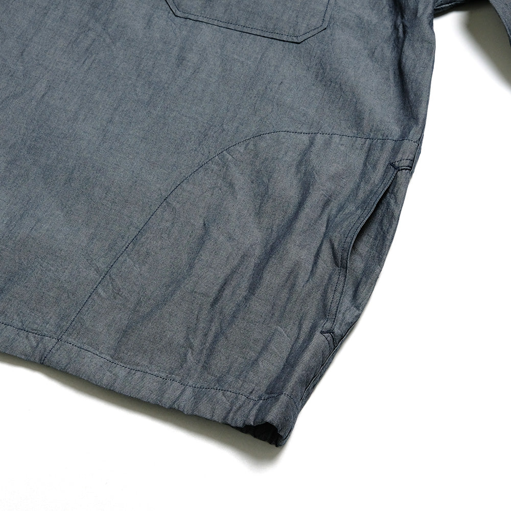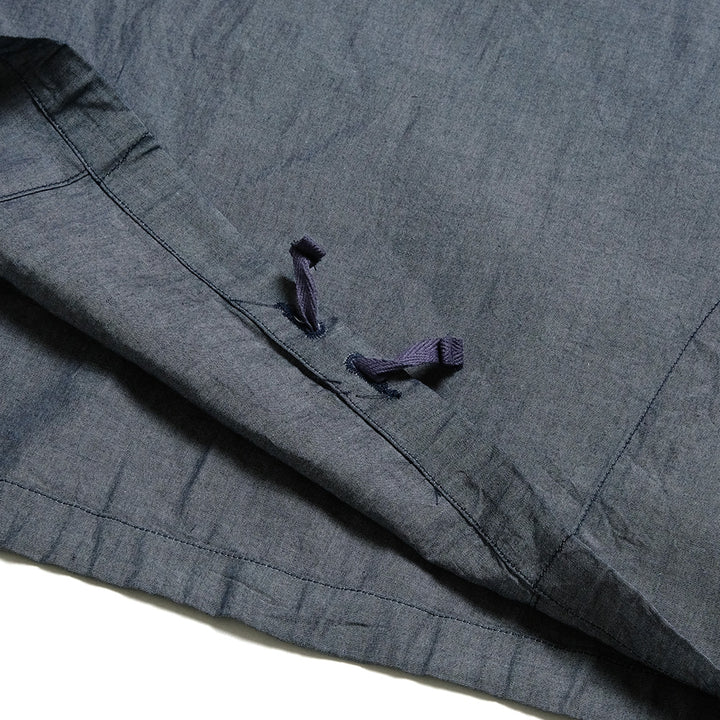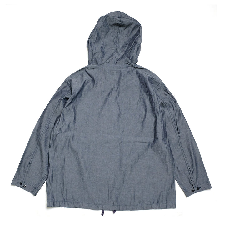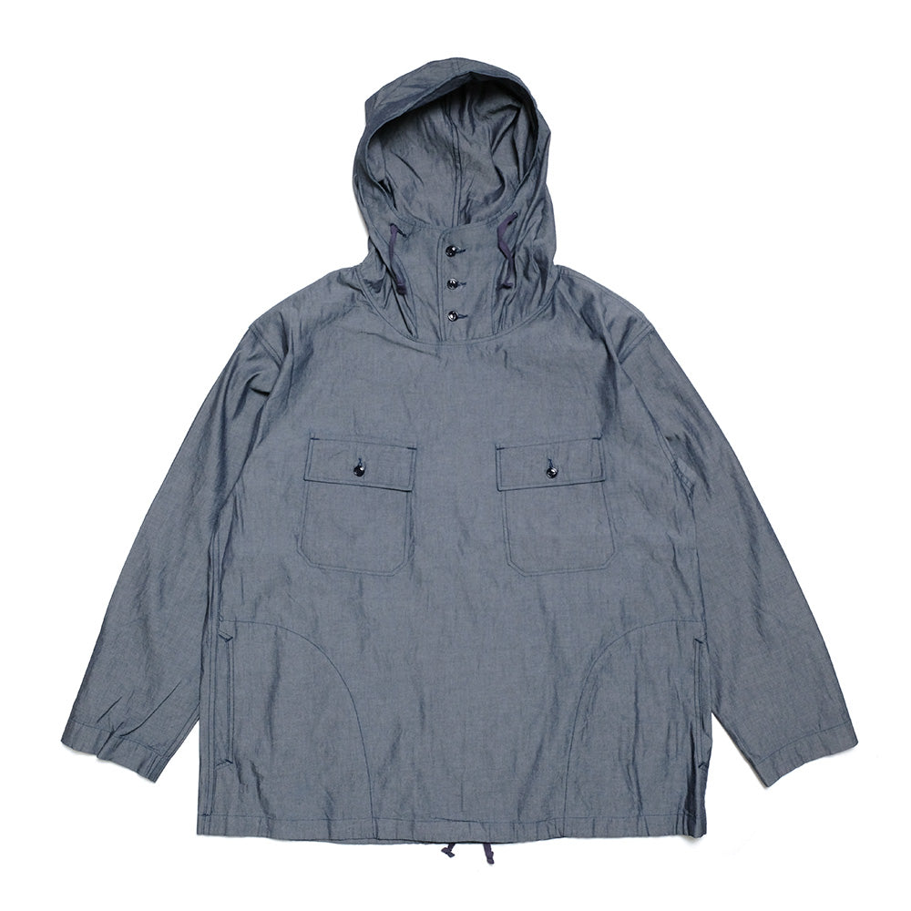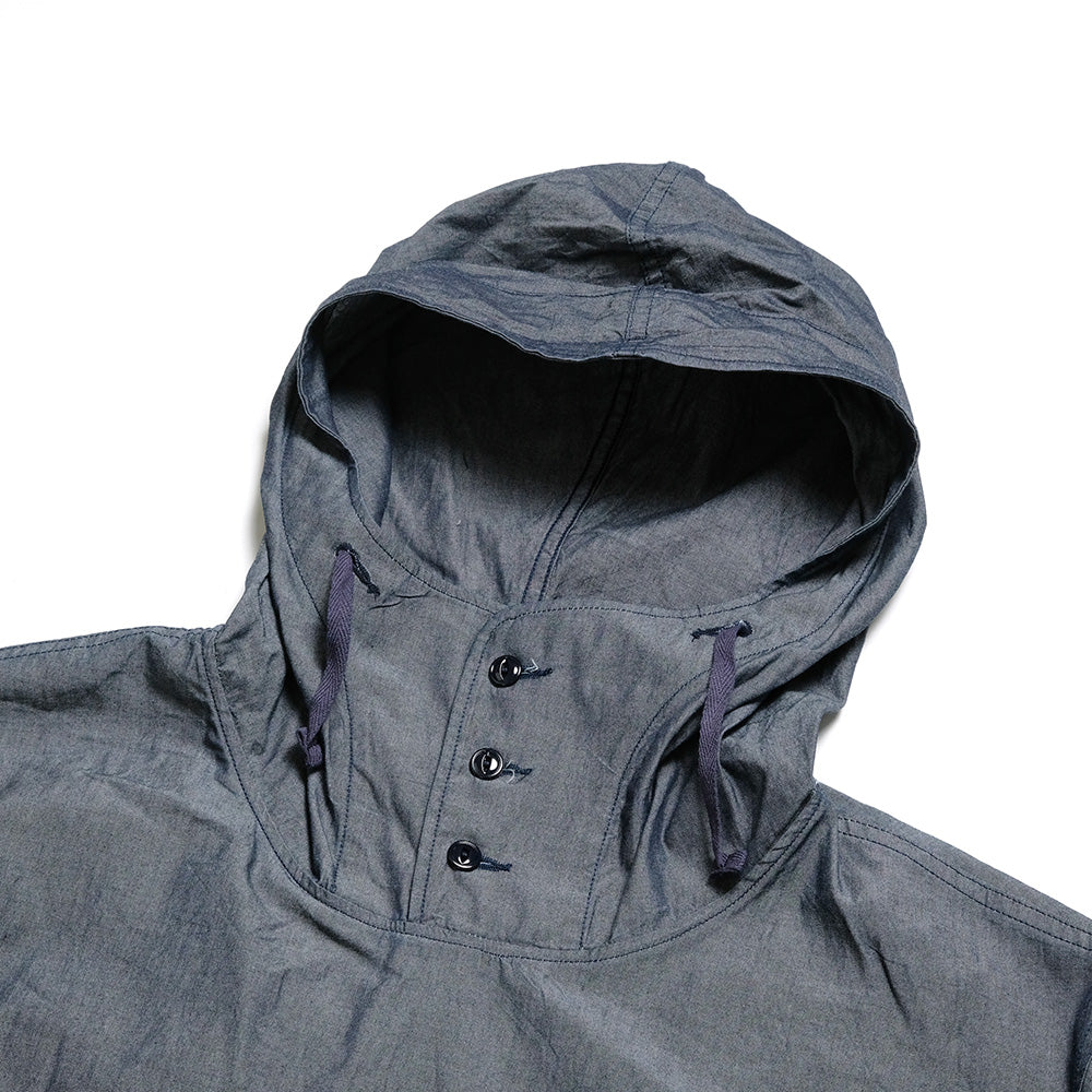 プルオーバーのフーディをコットンシャンブレー素材で制作したユニークな定番アイテム。単体でももちろん、レイヤードアイテムとしても存在感を発揮する一着です。首元と裾にはドローコードを備えており、シルエットに変化を加え幅広いスタイリングをお楽しみいただけます。
