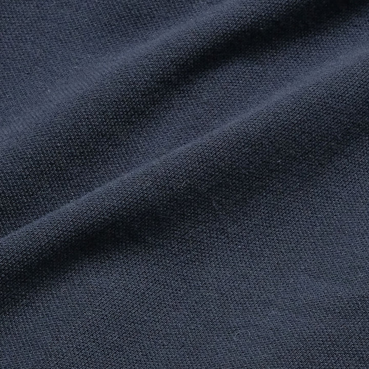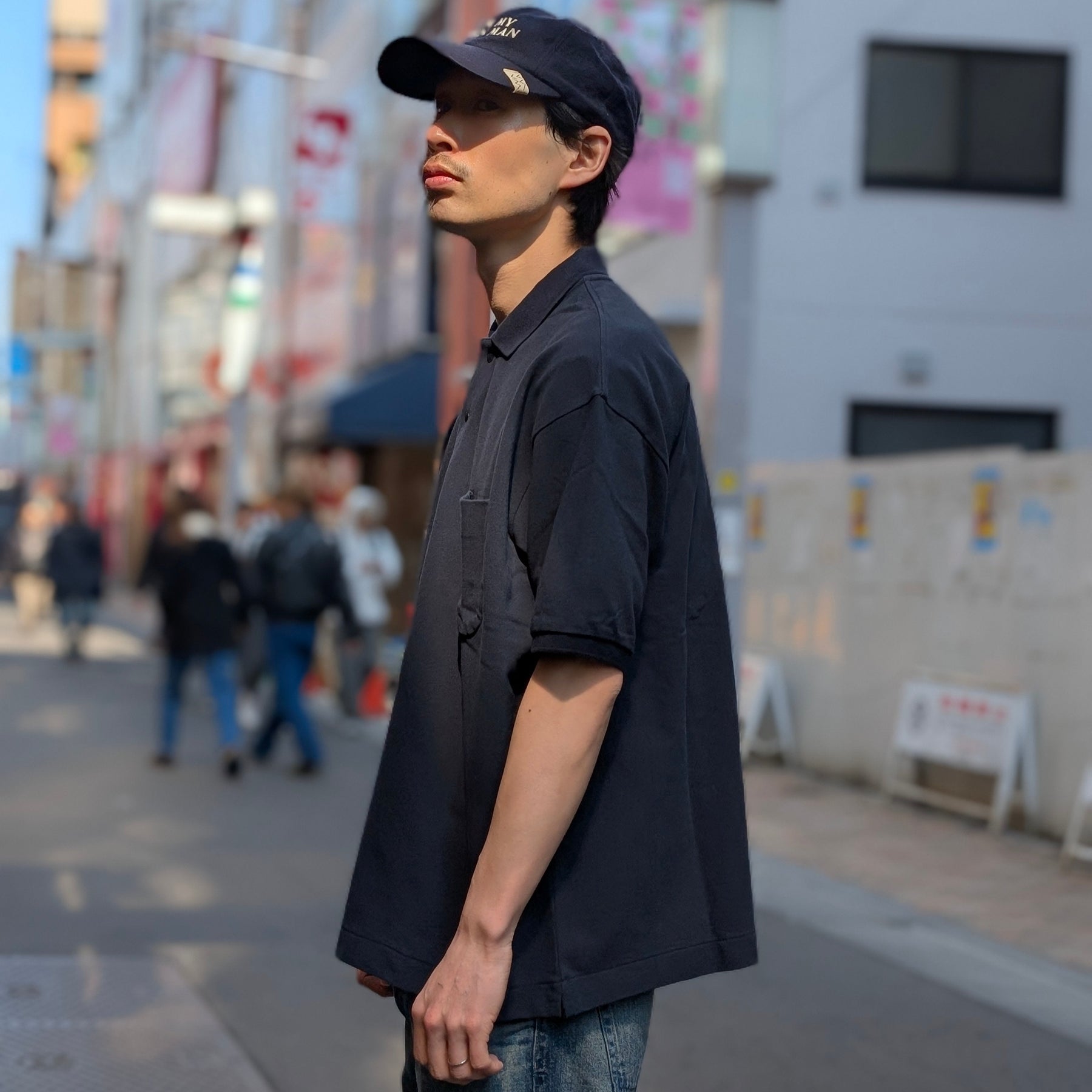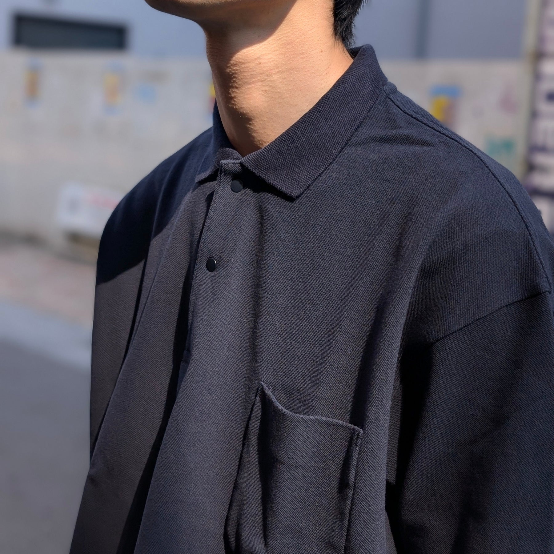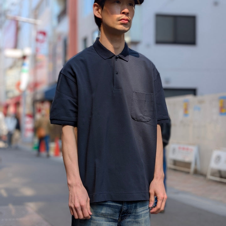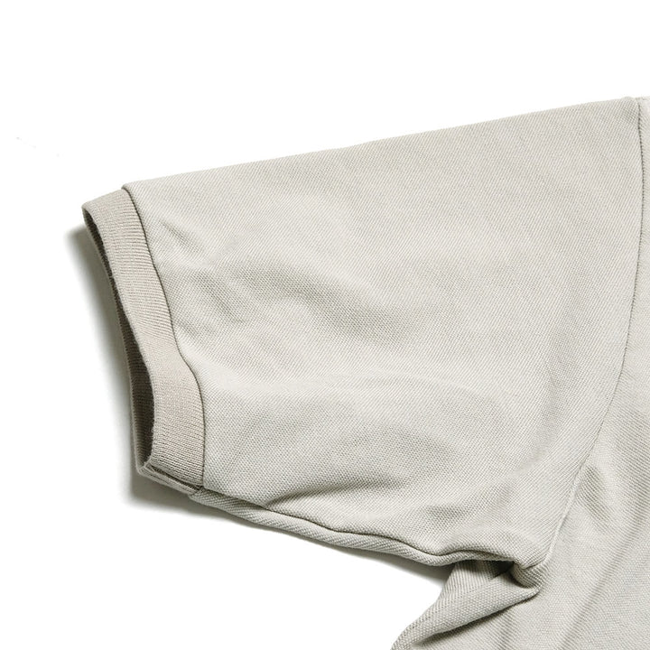 強撚したカバーリングコアヤーンを使用したドライタッチな鹿の子ポロシャツ。フランスのオーセンティックなポロシャツをベースにした前開きパイピング、裾スリット仕様。ゆったりとしたリラックスフィットです。