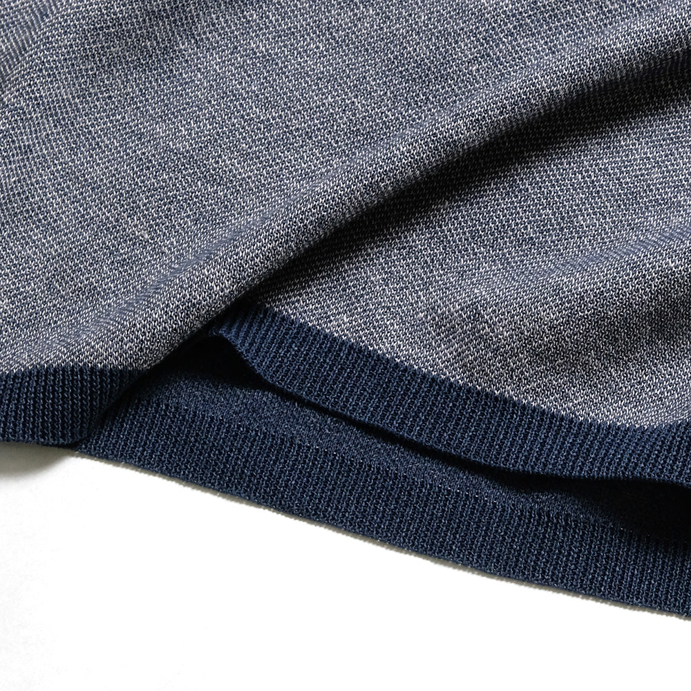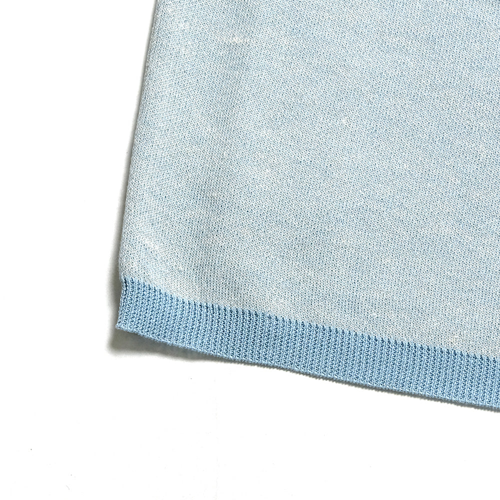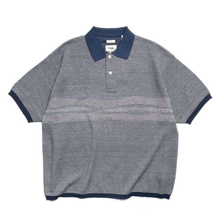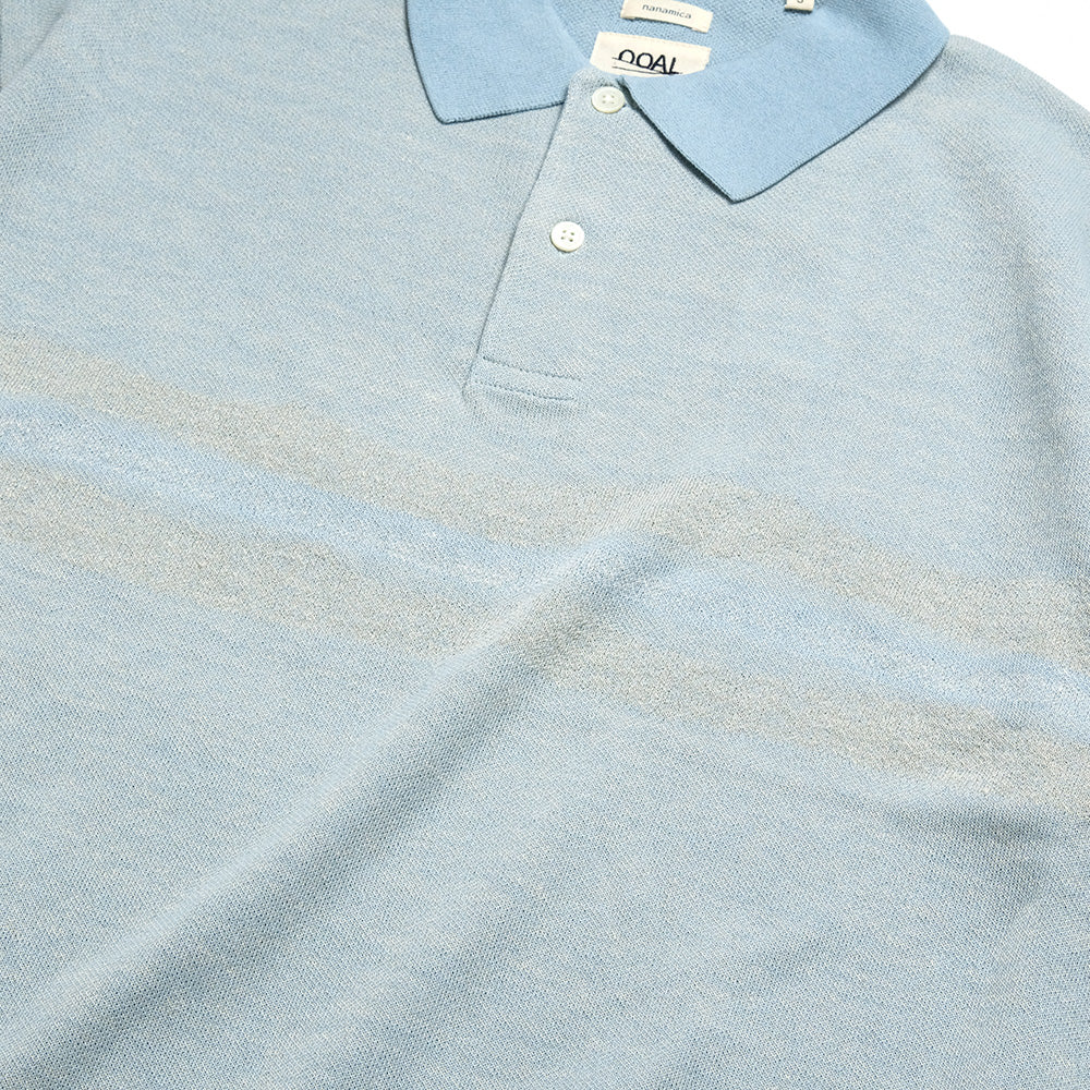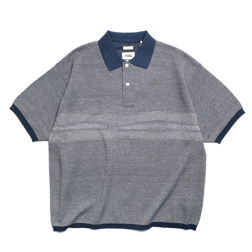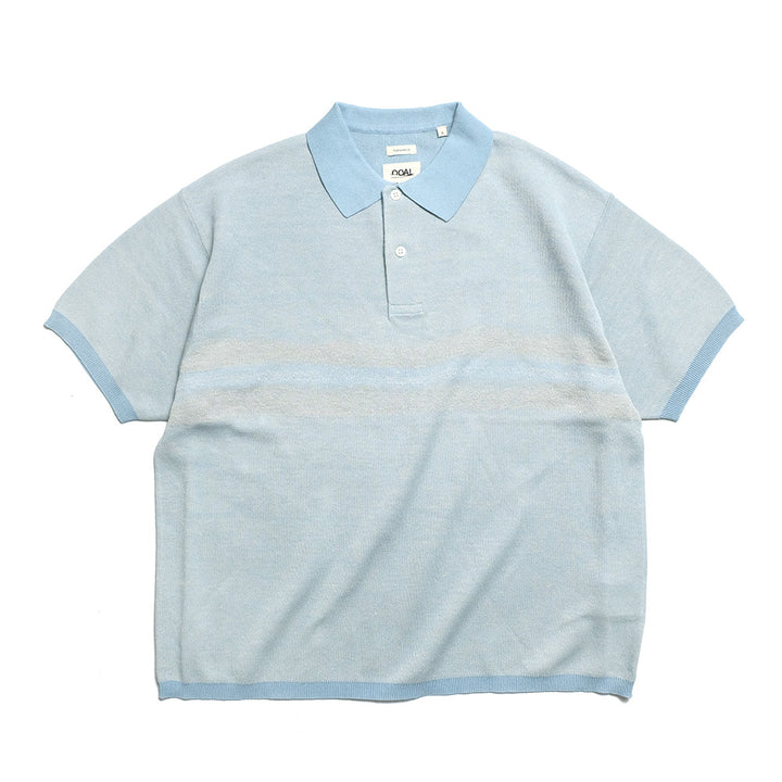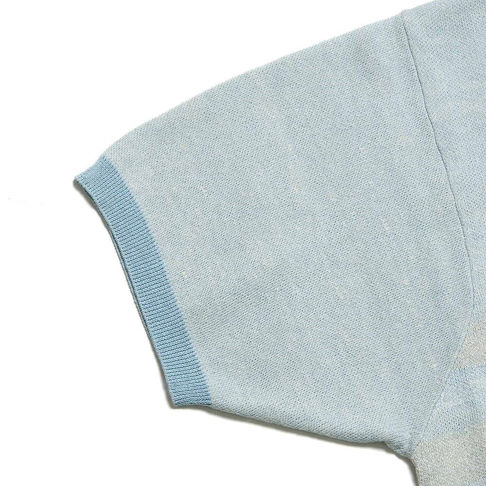 ゆとりのあるオーバーサイズフィットのポロセーター。胸に配した、絵本作家の牛窪 良太さんによる波をイメージしたアートワークをジャカードで表現した柄が特徴です。ジャカード生地の裏を表として仕上げることで、霞んだような柔らかな表情となっています。前面、背面どちらにも柄が入っています。表糸に和紙/ポリエステル、裏糸にリネン/ナイロンを使用することによりドライな質感をキープ。凹凸感のある編み組織によって肌離れのよい快適な着心地です。