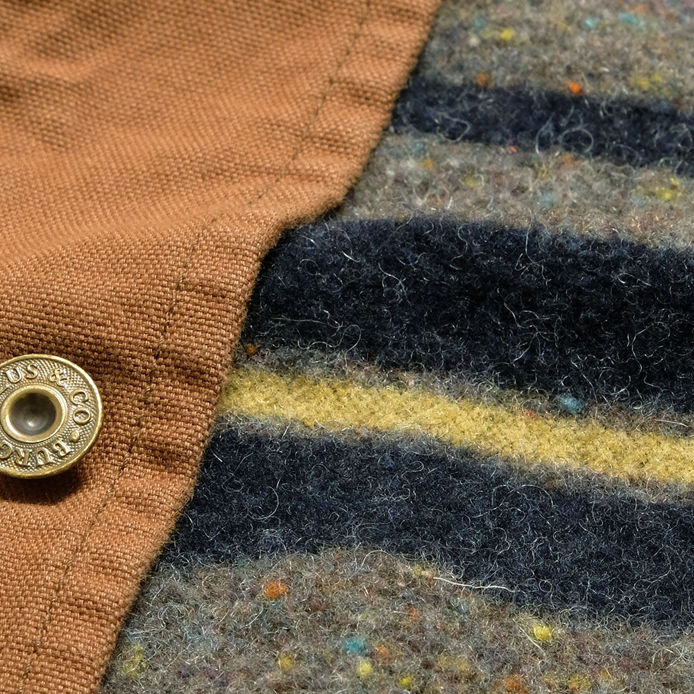 60年代のアメリカンカバーオールをベースに製作。表地は硫化染めヘビーブラウンオックス。裏地にはウール混ブランケットを採用し、保温性を確保。3本針縫製や台襟仕様など、ヴィンテージワークの要素を随所に採用。シルエットは洗練され、野暮ったさの無い雰囲気です。