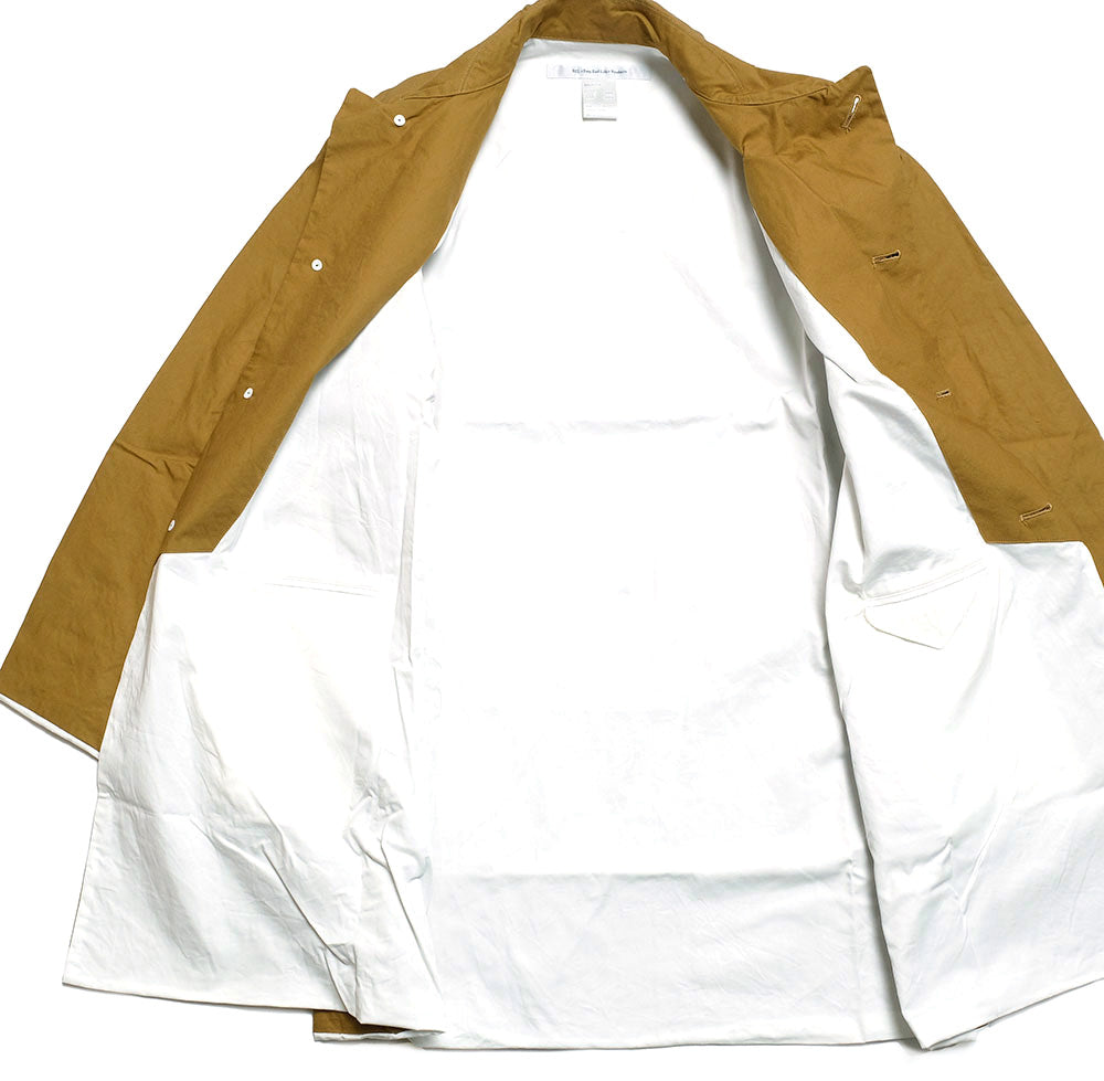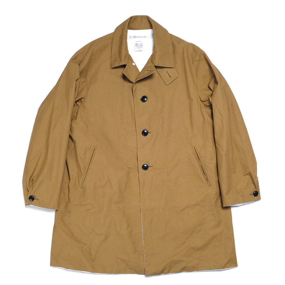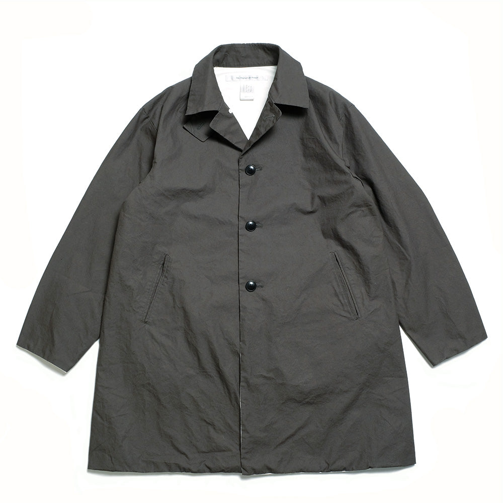 ブランドの代表的なスプリングコートコート。毎春の楽しみとして着てほしいコートという想いで名付けられましたが、実際はインナー次第で通年着られるような頼もしいアイテムです。表地素材は、元々は馬に乗る時に鞍が滑らないように敷く馬布素材を採用。高密度に織っており気密性が高く、風も通しにくい素材。表地と裏地は違った色を使用することで、ちょっとした動きで白い裏地が見えてアクセントに。無双縫製(表にステッチが出ない縫製)を用いた洗えるコート。洗うたびに生地の縮率の違いで、ふんわりふくらんだような風合いになるのが特徴的です。
