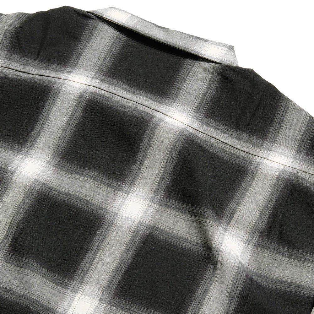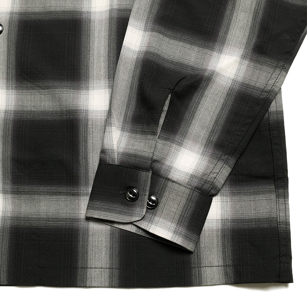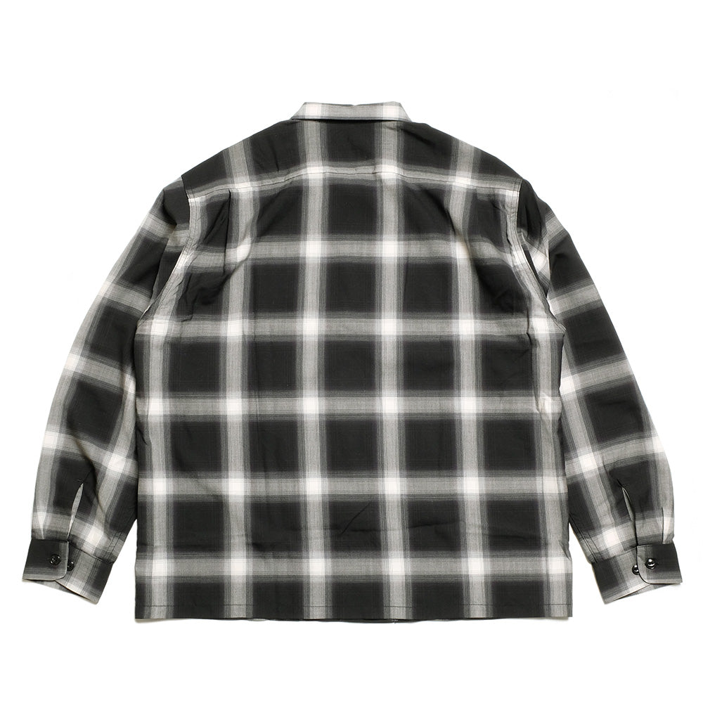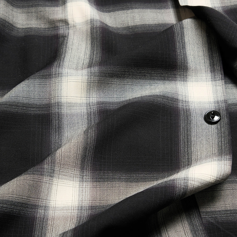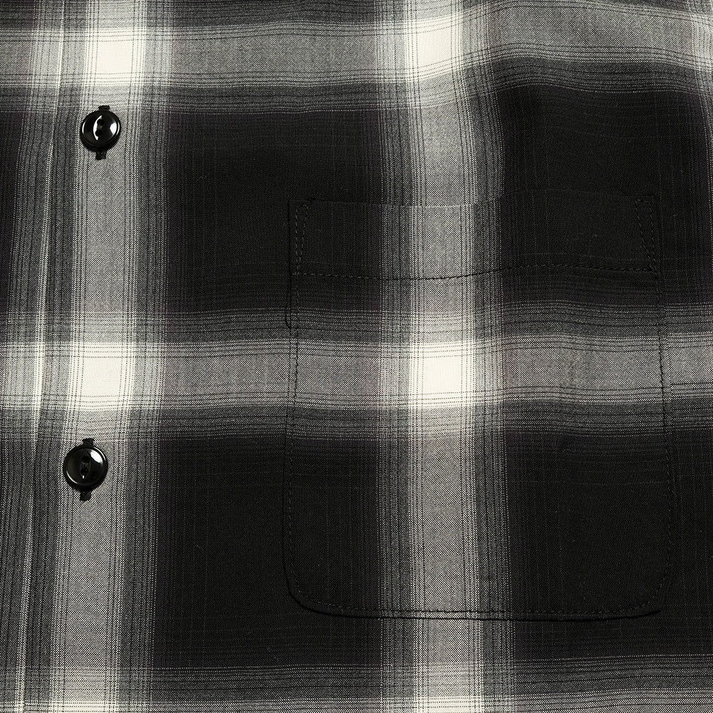 オーストラリア産メリノ種の梳毛糸2/100番手のウールスーパー140ʼsの貴重な高級原料を贅沢に使用し、先染めのオンブレチェックで織り上げたオリジナルのウールトロピカル素材。生地にオゾン防縮加工を施し、風合いを損なうことなくシワになり難い素材に仕上げました。定番のボックス型シルエットのオープンシャツは、ポケットや身頃、脇まで細かく柄合わせされ、袖口カフスにボタンを2つ付ける事により、袖開きの調整が可能なディテールとなっています。