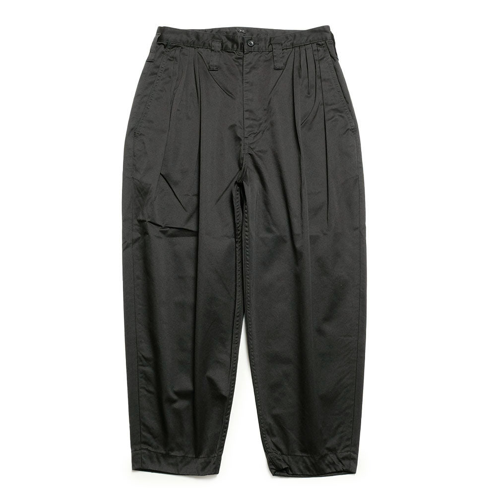 たっぷりとしたシルエットとギャザー、裾口にかけてのテーパードが特徴のPCを代表するビバップパンツ。新しい『SUMMER CHINOS』シリーズは、従来と同じスピーマコットンを使用しながらも、織りを単子の左綾から逆三子の右綾へ変更、更にウエストポイント生地を採用することで大きくアップグレードしました。裏面にはピーチ加工を施し肌あたりが柔らかくなり、快適に穿けるようになりました。