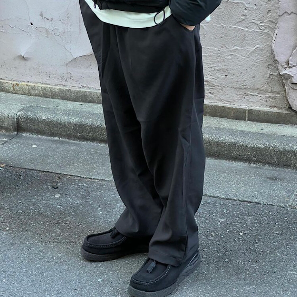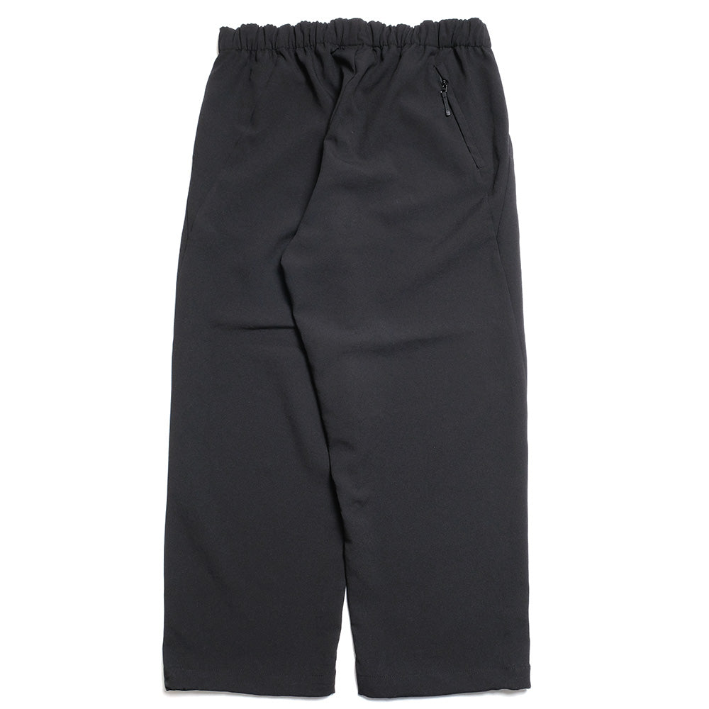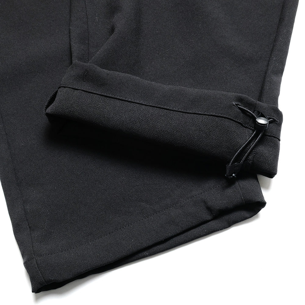 Wide pants made of stretch fabric. The soft shell fabric is made of 100% polyester mechanical stretch material with two layers of mesh fabric, which is very breathable and quick drying. UV protection (UPF 15-30, 85% UV cut rate or higher) is included. It is also water-repellent and can be used in the event of some rain. Ankle-length inseam (9/10 length). Drawcord at the hem allows you to change the silhouette. The waist is easy to adjust with elastic and strings.