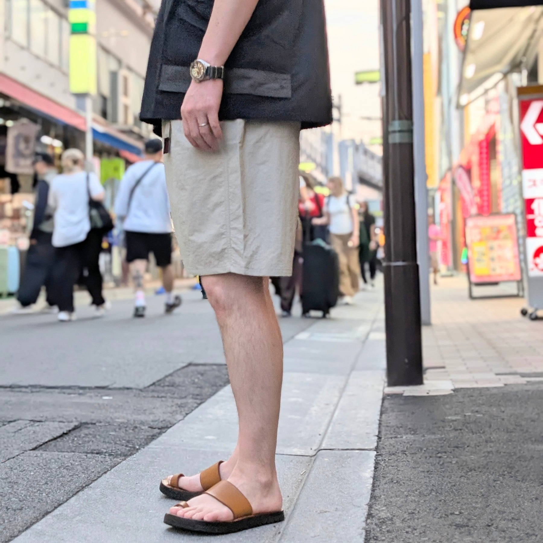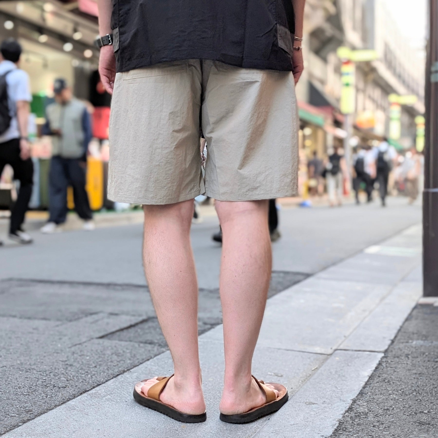 These loose shorts feature a dry touch and a washed look. The water-repellent, windproof material makes them perfect for sudden rain or wind. These shorts are suitable for both land and water activities.