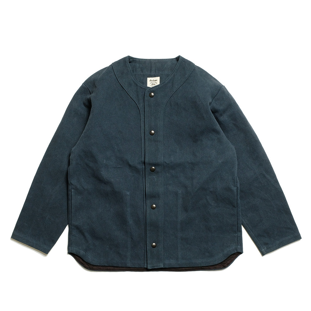 In the early 1920s in Japan, sashiko-stitched fabric was used for the bases from first to third base. To recreate the texture of that base's fabric, Jackman commissioned a martial arts equipment manufacturer founded in 1918 to produce the fabric. Using a special loom capable of twisting 20-count cotton yarn to its limit, they created a "sashiko" fabric with a distinct, uneven texture. This sashiko uniform jacket features fabric treated with paraffin wax and a bio-wash process to soften the texture, making it comfortable to wear. The front-facing is left exposed to create a baseball uniform-like look, and large hand-warmer pockets are placed on the sides.