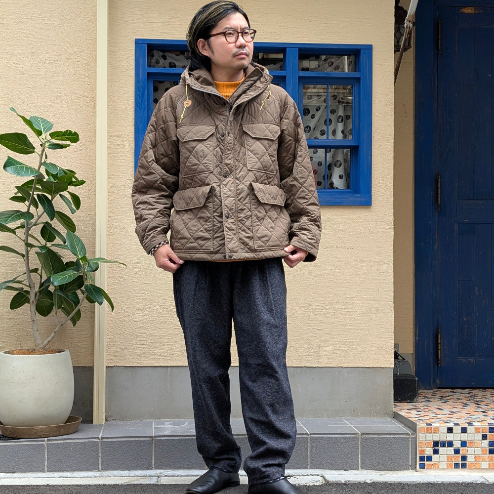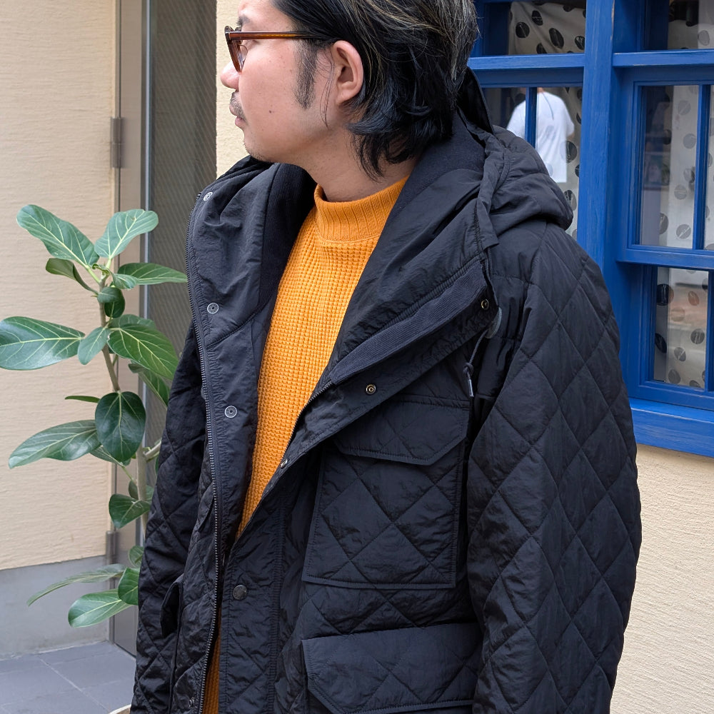 Field Mountain Parka made of recycled nylon quilted fabric, combining warmth and design.