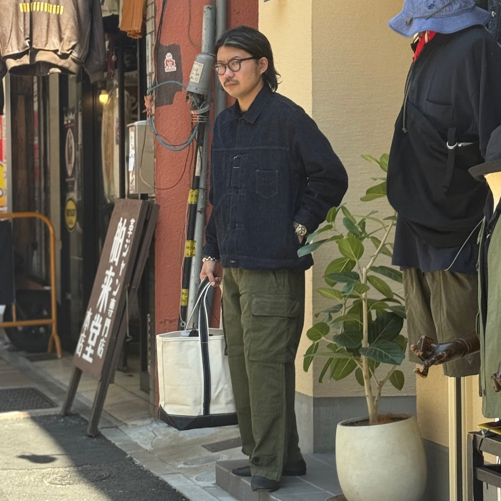 "OUTIL" means "tool" in French. The brand's name reflects the idea of clothes as tools made for a certain purpose and the message that the brand wants to be a tool that connects people to each other. They develop collections inspired by various vintage French clothes, visit France to learn traditional French techniques and dyeing methods, and produce their products mainly in France and Japan.