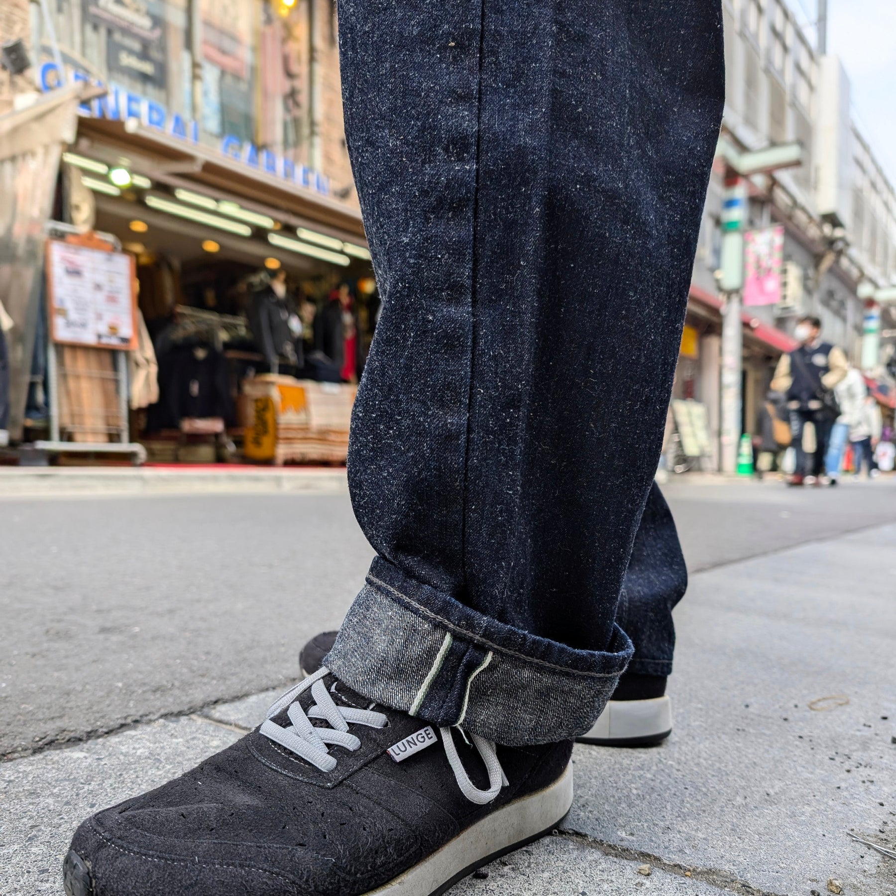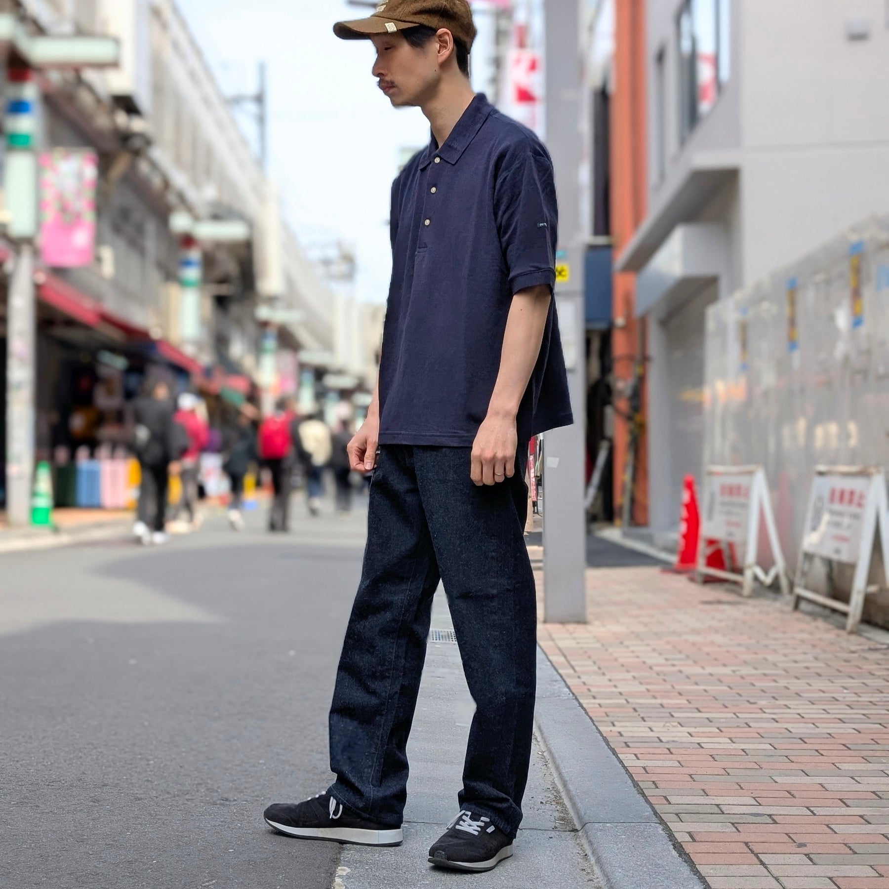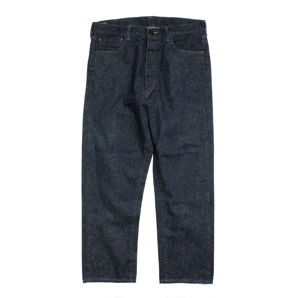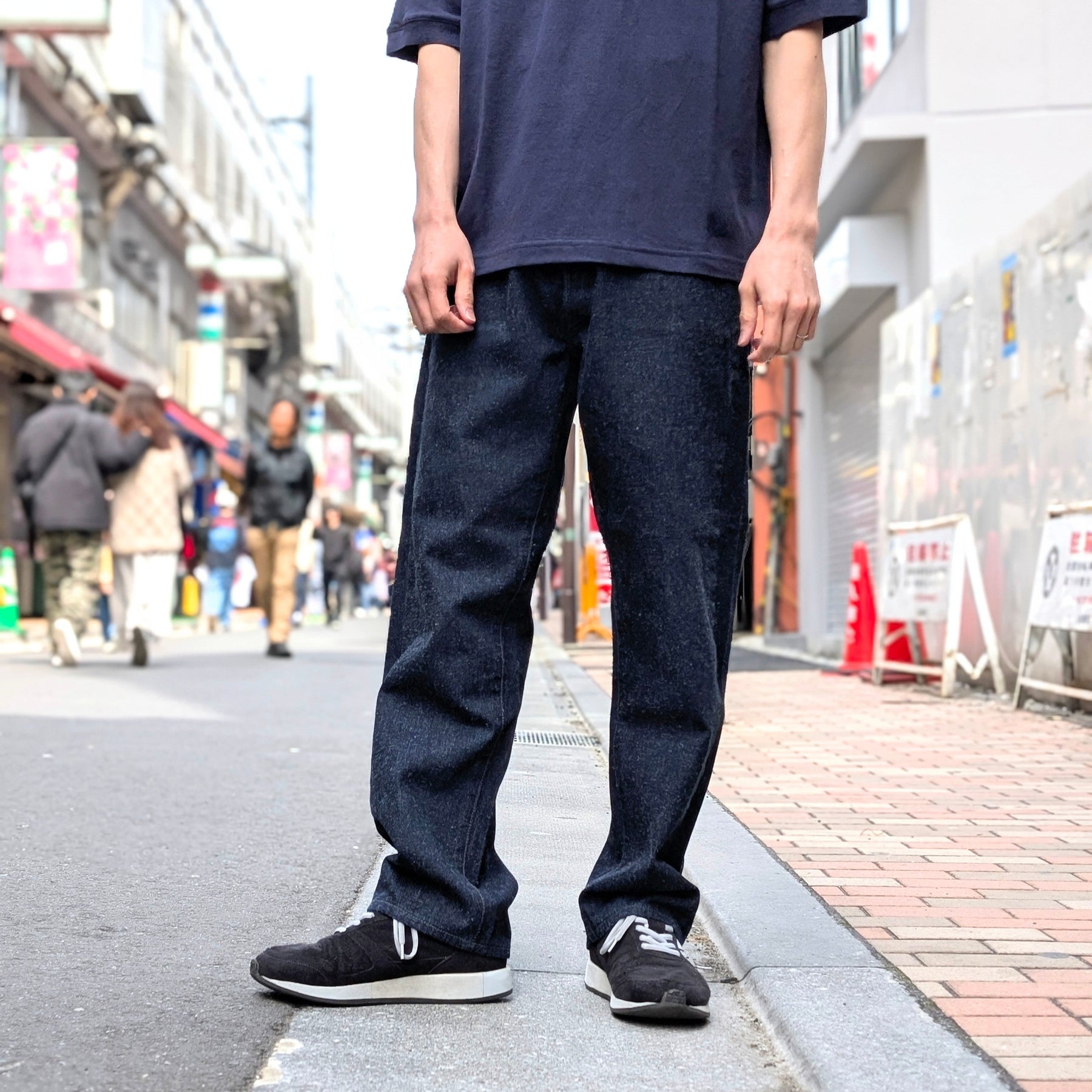 These five-pocket pants are unbalanced with the back by making the front extremely small. The warp is rope-dyed with natural indigo, and a cotton/hemp blend is used for the weft. These jeans are made of the brand's original deep indigo-colored denim. With its relaxed silhouette, this pair is recommended all year round.