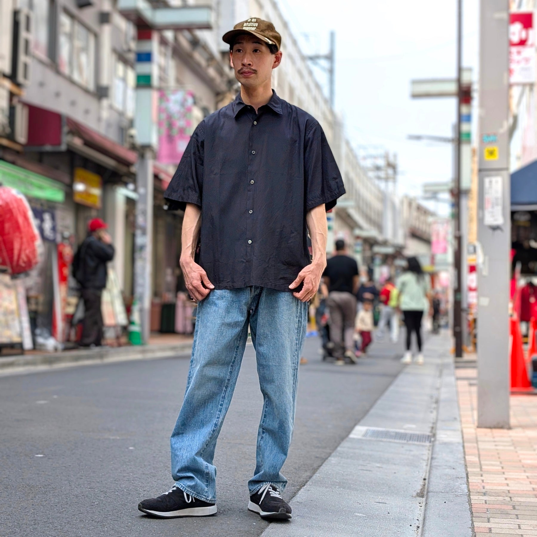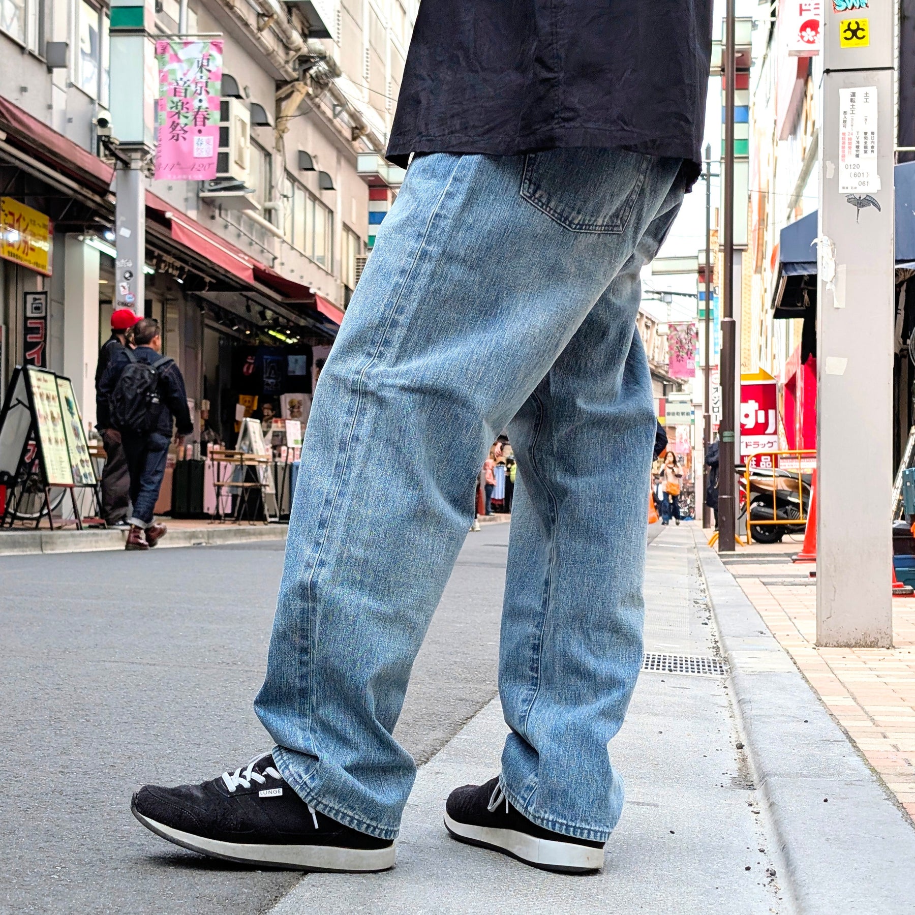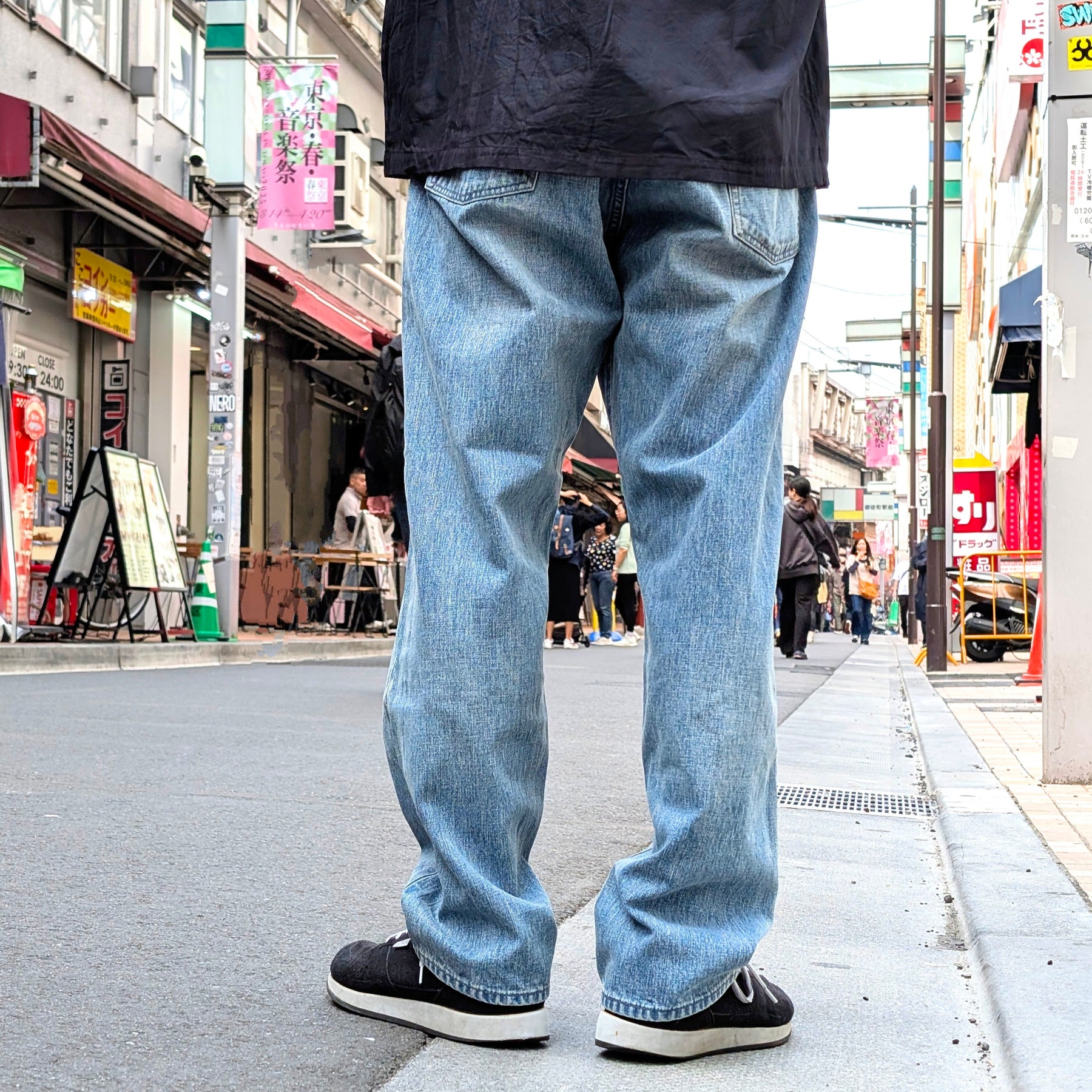 These five-pocket pants are unbalanced with the back by making the front extremely small. The warp is rope-dyed with natural indigo, and a cotton/hemp blend is used for the weft. Faded blue-colored jeans with the brand's original processing. With its relaxed silhouette, this pair is recommended all year round. The washed finish makes them a familiar look and feel from the moment you start wearing them.