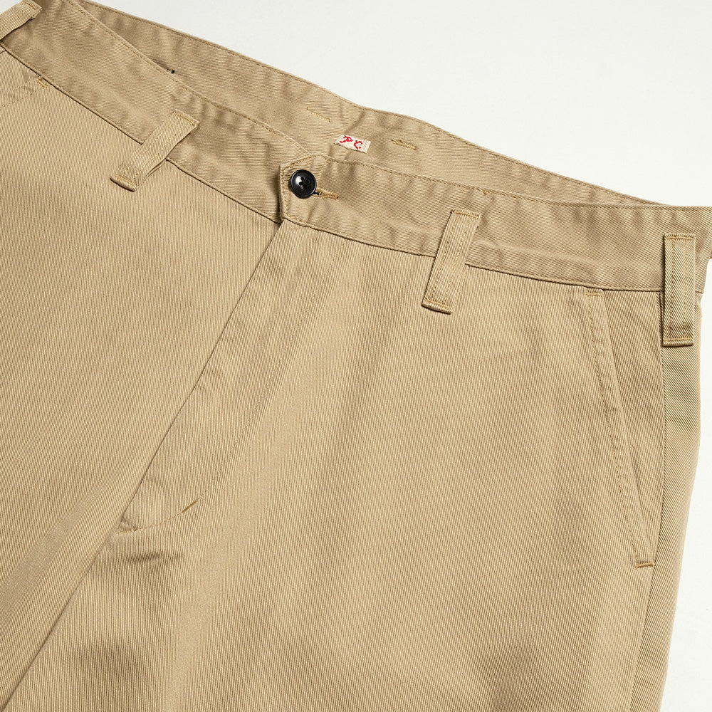 The "Gene Kelly" is wide pants made of fine cotton chino cloth. It features a loose thigh width and a shorter length. It is "Porter Classic" unique pants with a loose-fitting yet classy look.