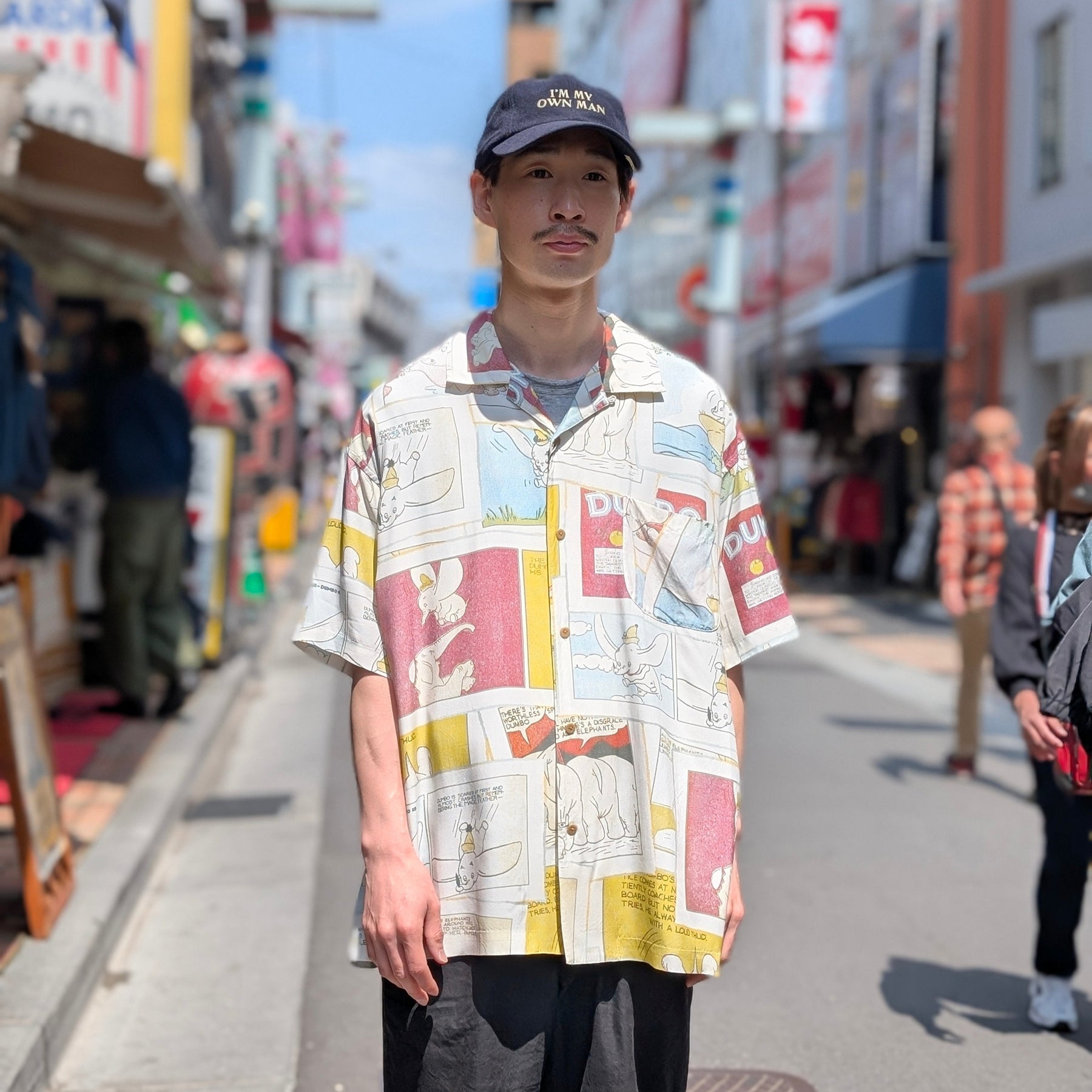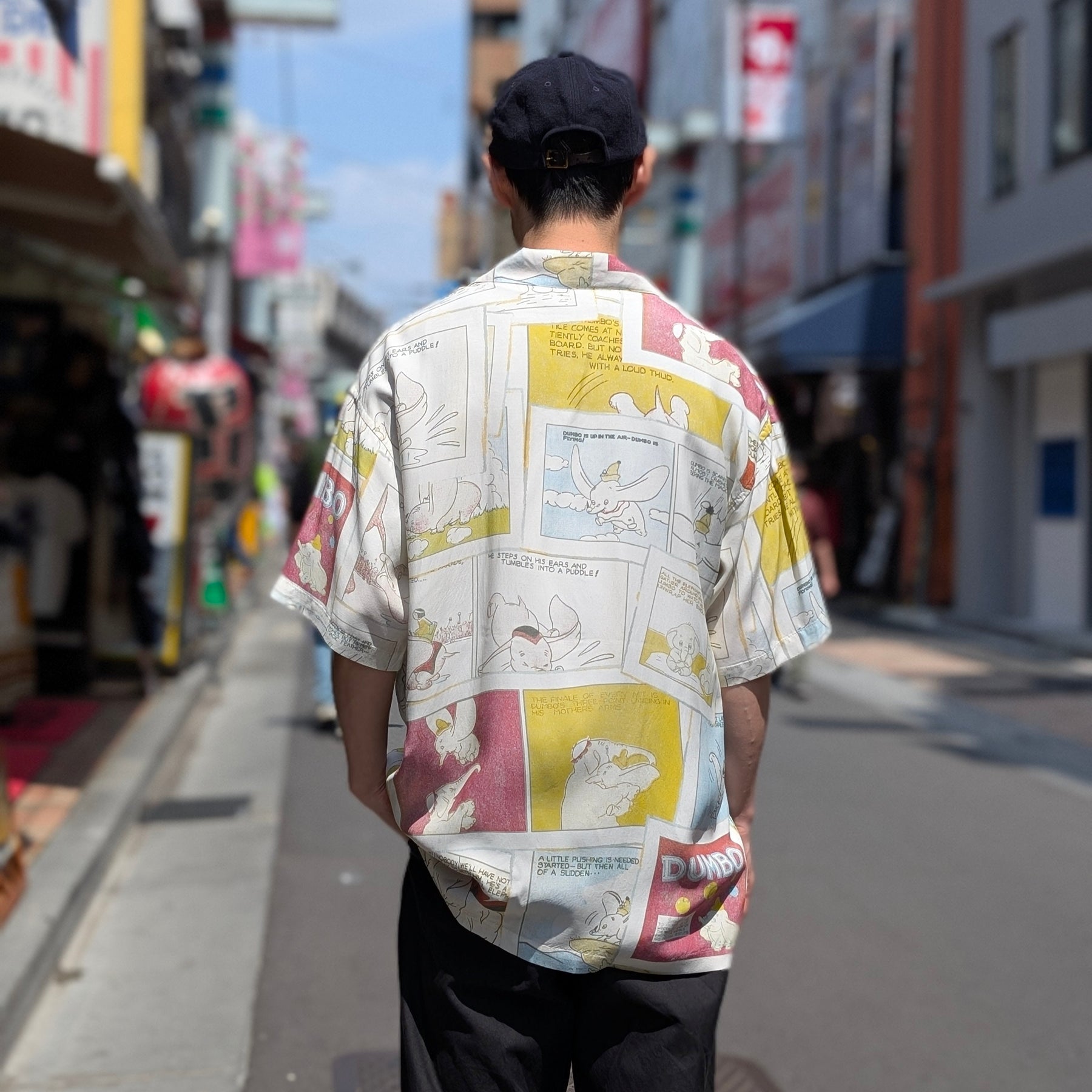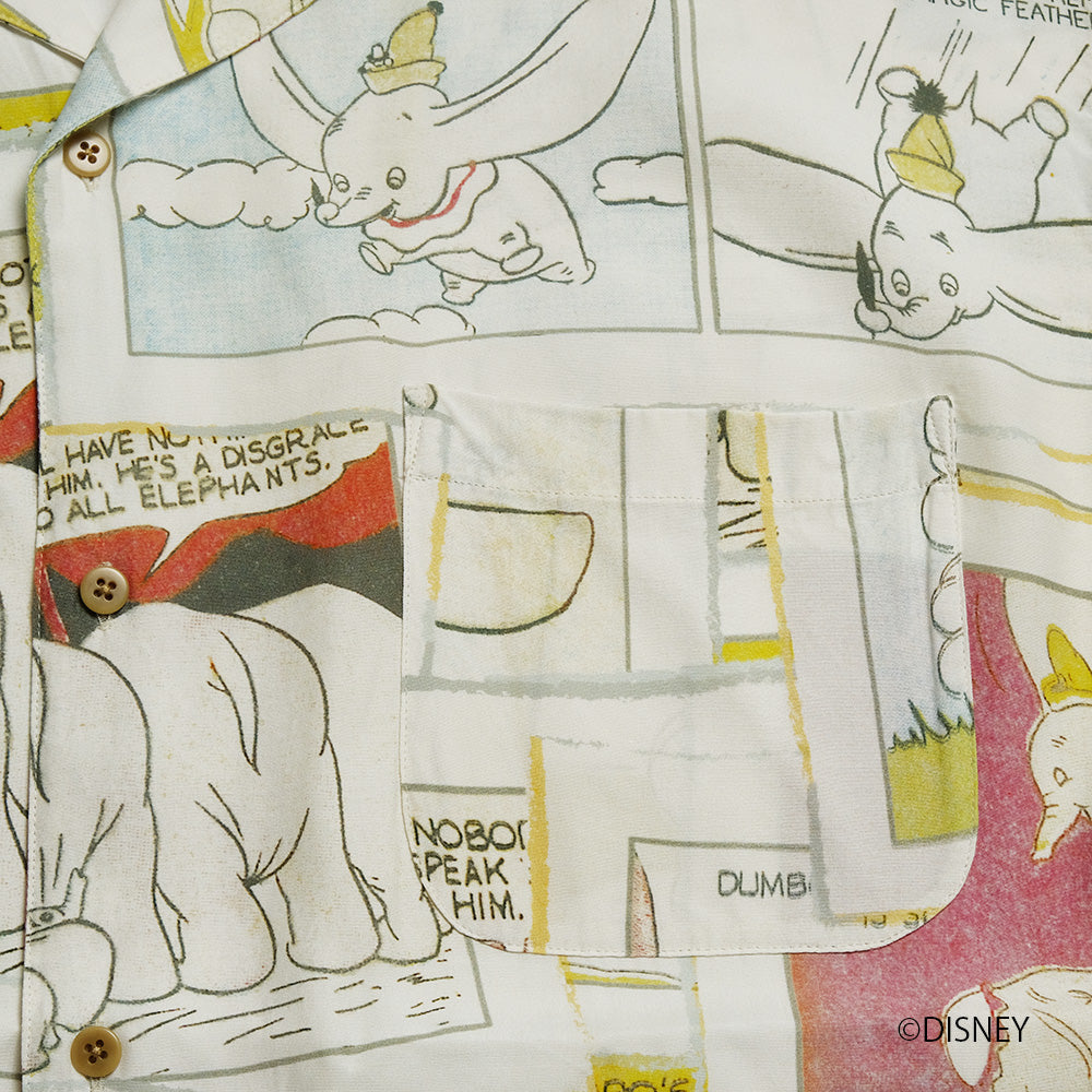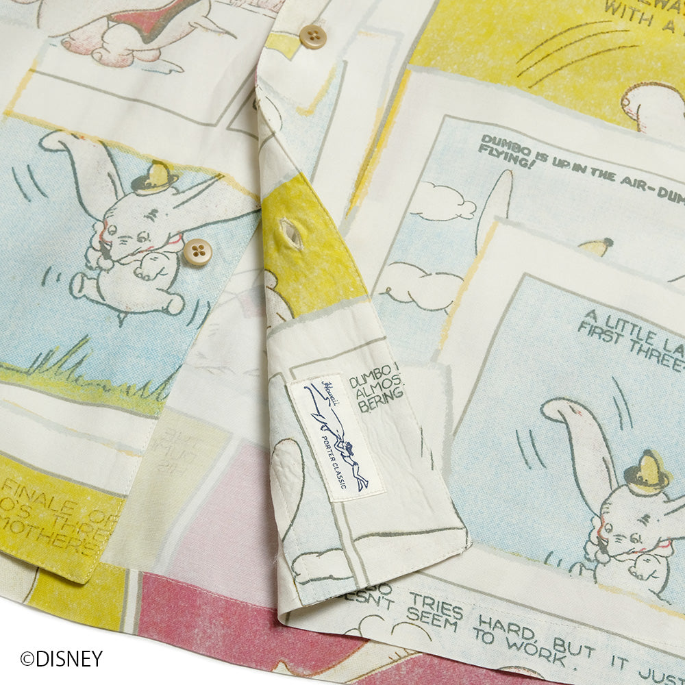 The brand's popular series with Disney character prints. This Aloha shirt is a Porter Classic exclusive item featuring a print of the popular Disney character "Dumbo" as the main print. This special design was selected from vintage Disney movie posters and old art books from the 1930s and 40s. It is made of rayon with a cool texture and has a loose silhouette.