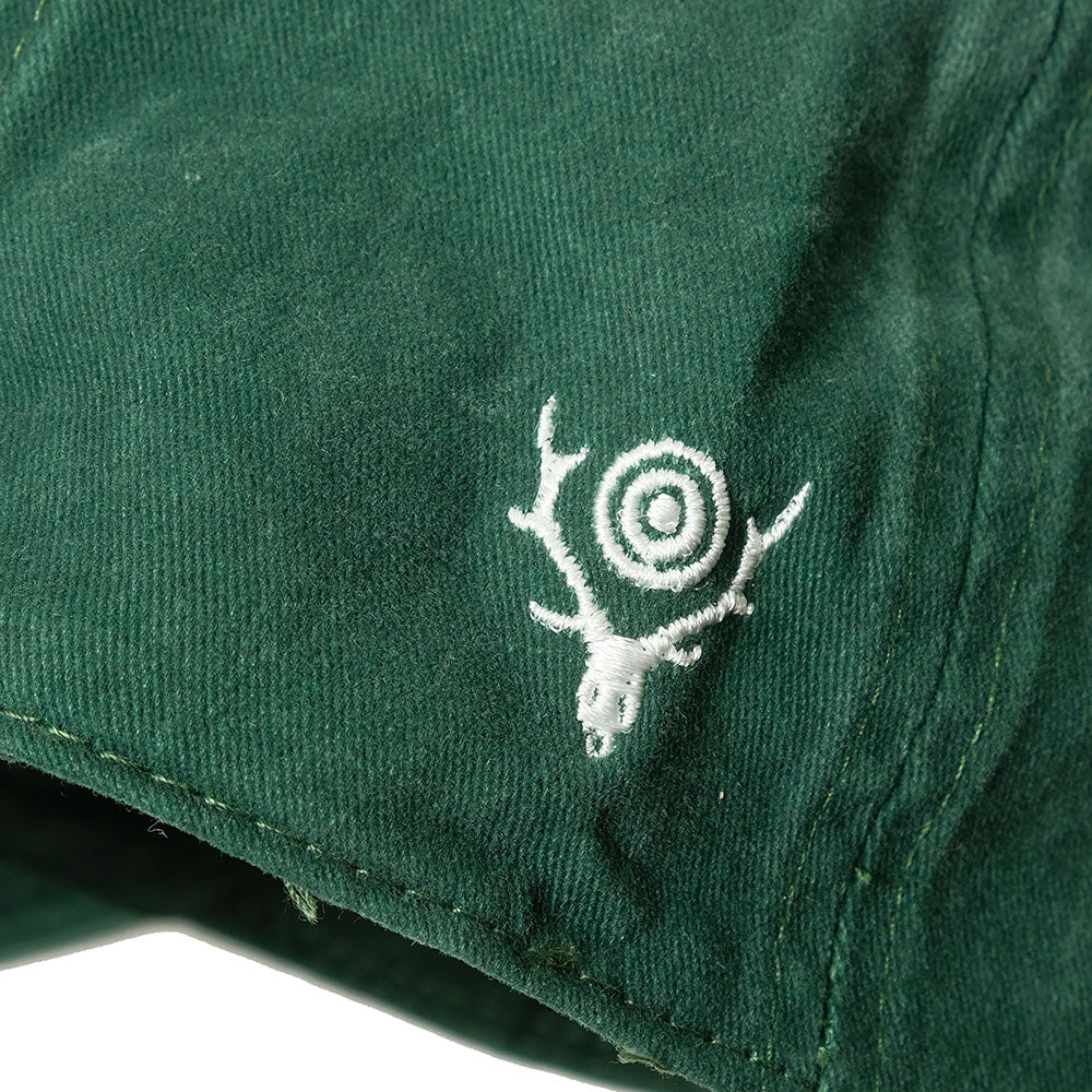 A standard cap with a slightly longer brim, shallow silhouette, and a strap back. The key phrase of this season's “SOUTH2WEST8” is embroidered on it. This item is made of cotton material and has a soft texture.